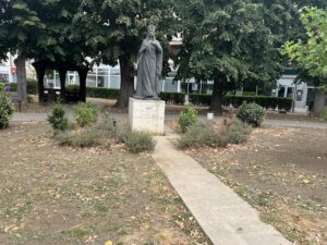 Cea care în timpul Primului Război Mondial a devenit „mama răniților” privește acum de la înățimea soclului său statuar, și acesta pătat și murdar, peste neputința unor vremuri care rănesc orgoliu oricărui giurgiuvean care are măcar o umbră de bun-simț.